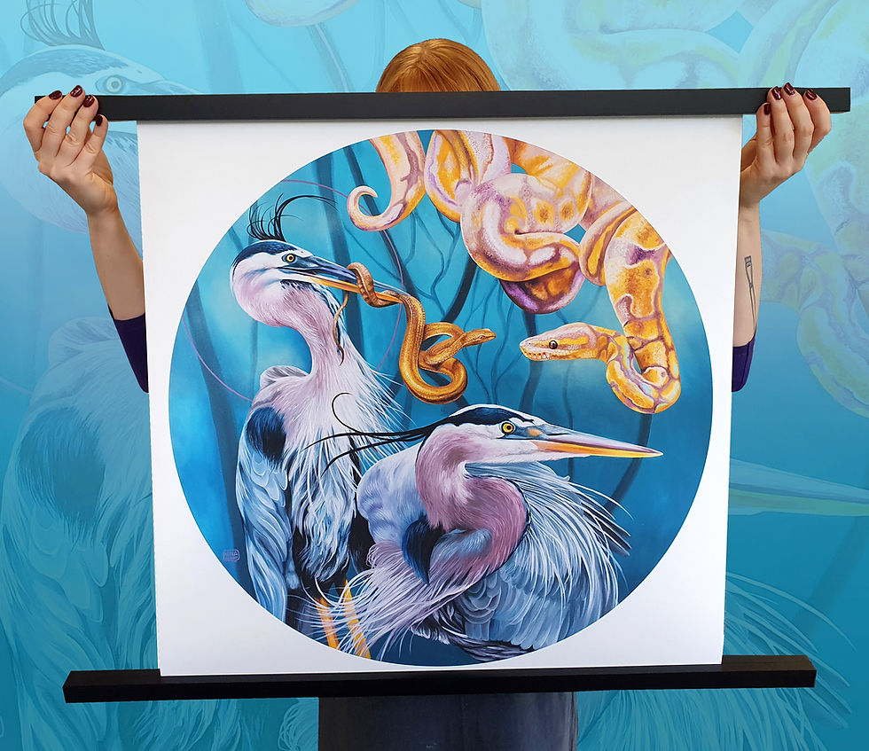 Framed fine art giclée print 'Ocelot, Civet & Raven x 2'
